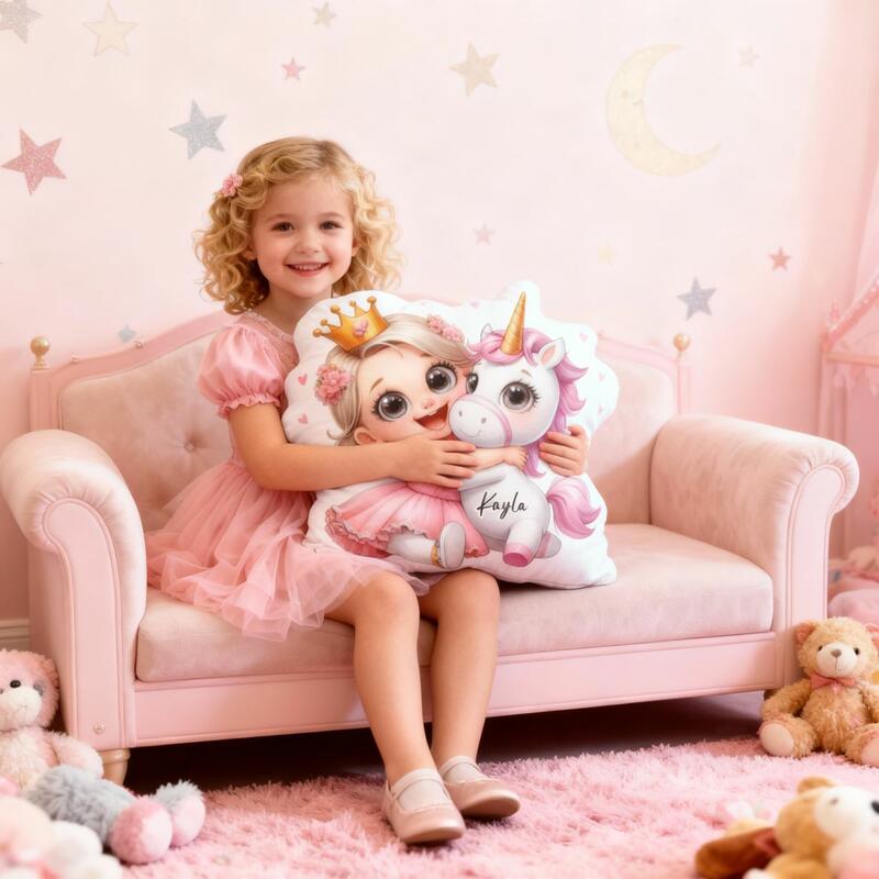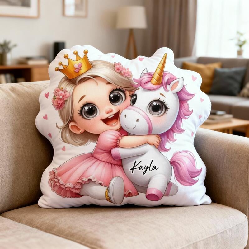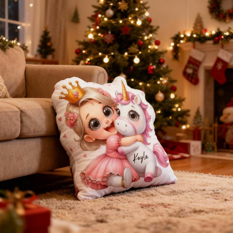 Gepersonaliseerd eenhoornkussen met schattige prinsessenprint Stoffen decoratie voor meisjes