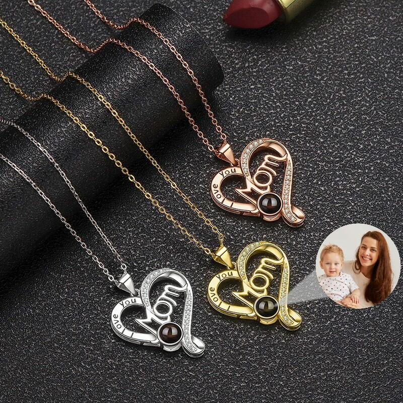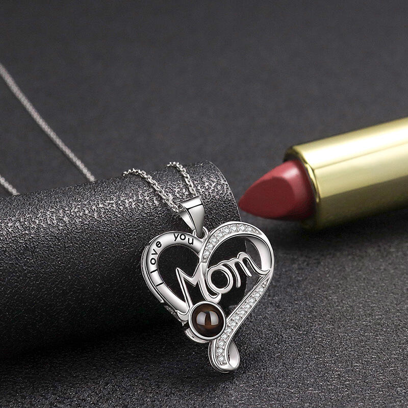 Sterling zilveren gepersonaliseerde foto projectie ketting met hart patroon en glanzende diamanten Exquisite Moederdag cadeau